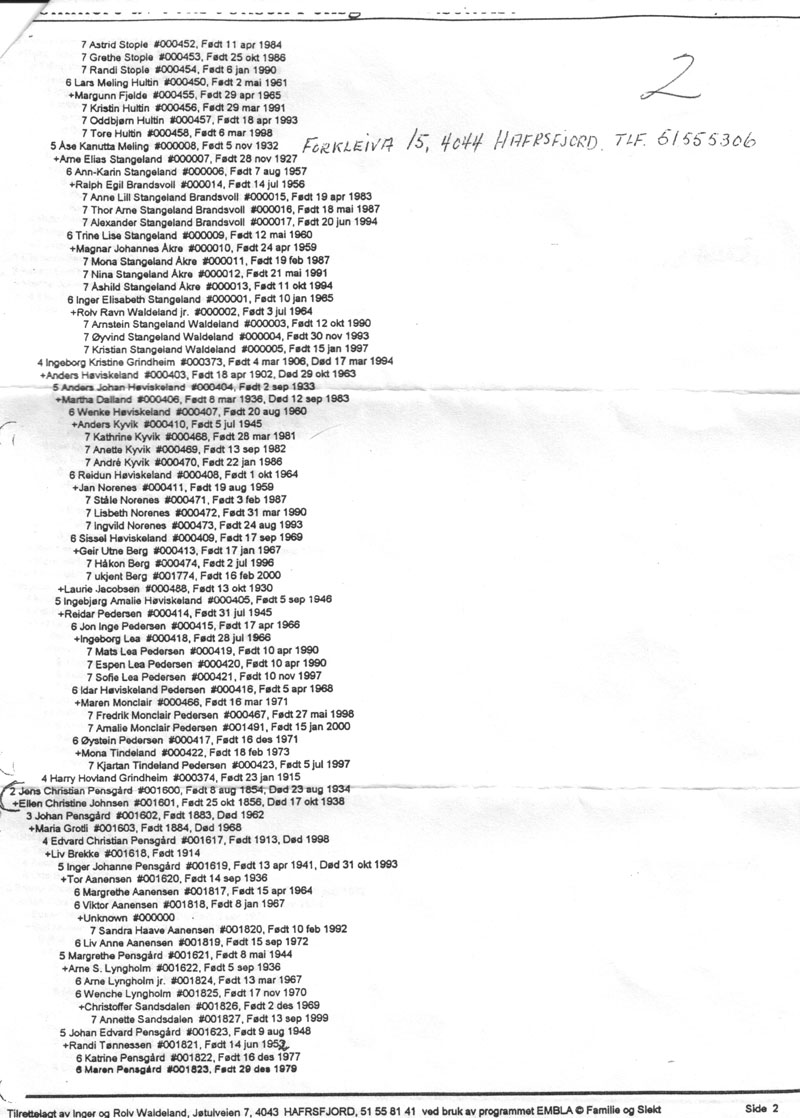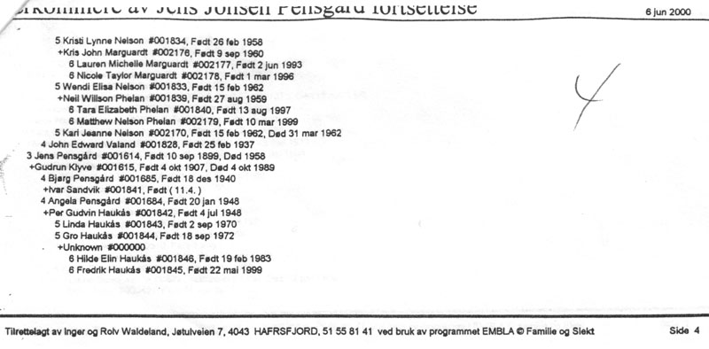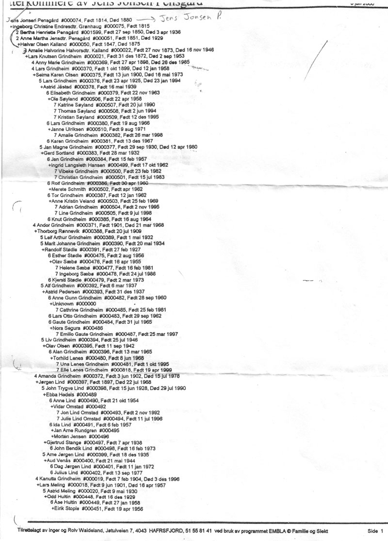 This genealogy begins with Jens Jonsen Pensgard, the first person
