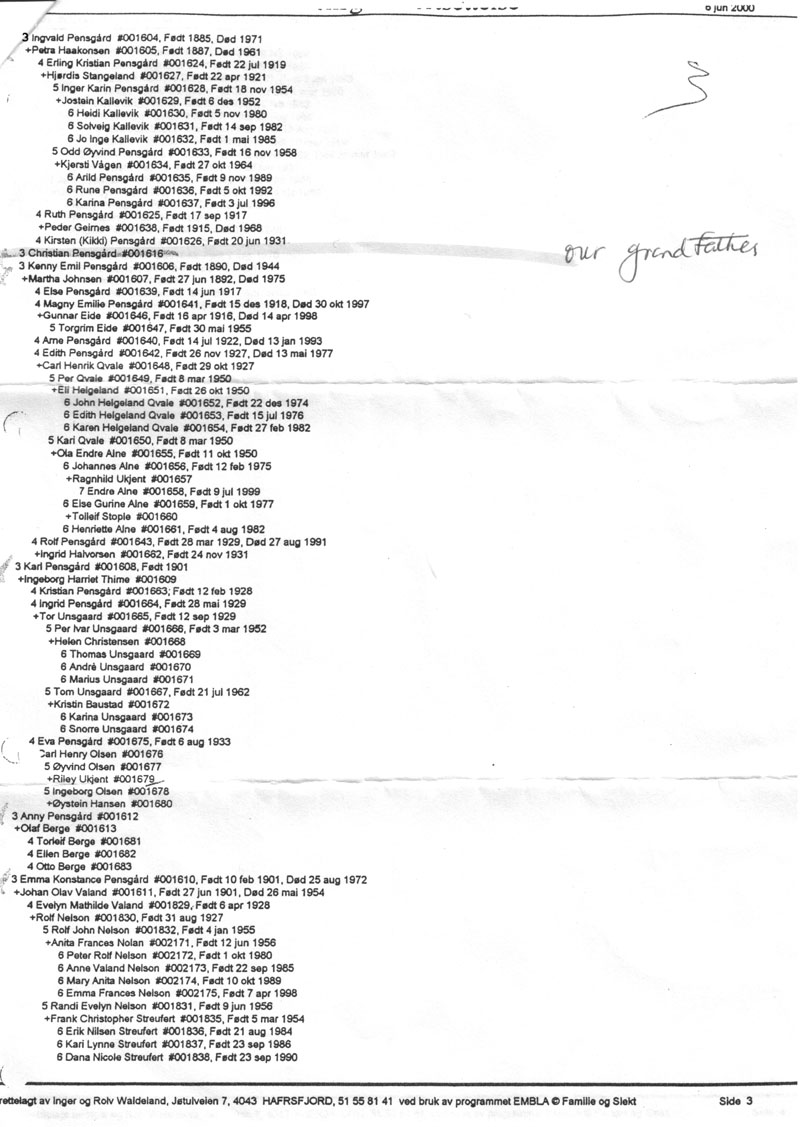 A Pensgard Genealogy